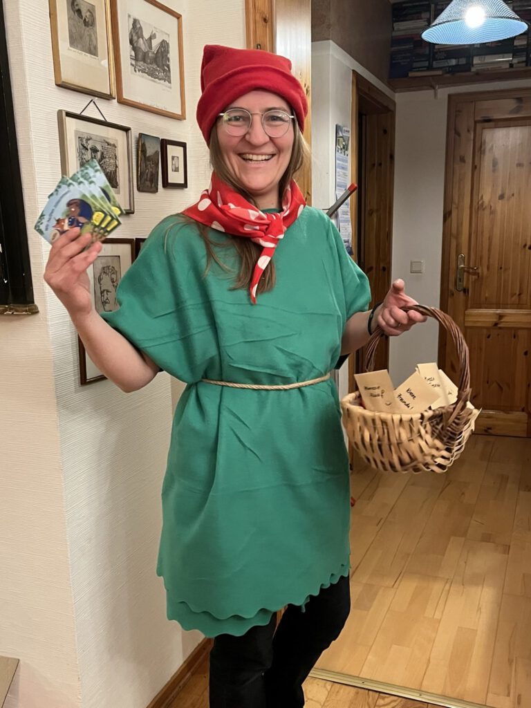 Das erste Mal in ihrer Geschichte gehen die Bonner NaturFreundinnen und NaturFreunde unter dem Motto „Echte Naturfründe stonn zesamme!“ bei dem Karnevalszug in Schwarzrheindorf mit. Über 50 Kostüme mit Zipfelmütze, Halstuch und Gewand wurden genäht, damit wir als Pixi-Wichtel durch Schwarzrheindorf ziehen. Jede Menge Wurfmaterial steht bereit. Nicht Süßes, sondern 1500 Pixibücher. Diese wurden gespendet von vielen Institutionen, Verbänden und dem Kleinen Laden e.V. Dazu gibt es selbst zusammengestellte Samentütchen mit Samen von Slow Flower.